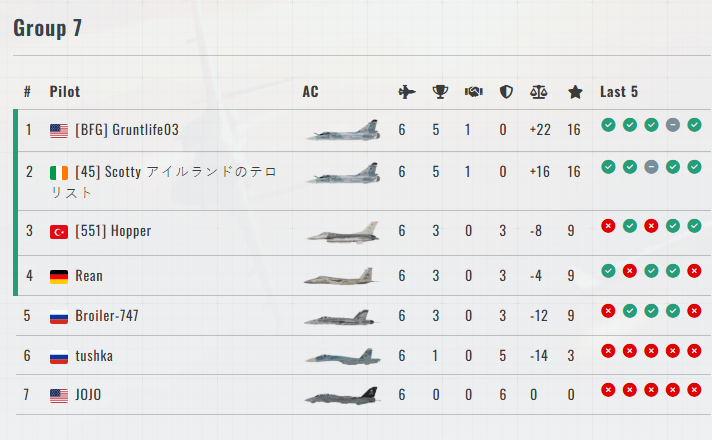 Yesterday, Groups 4, 5, and 7 competed in the Group Stage of the VIRPIL Controls BFM Tournament! The pilots advancing to the Knockout Stage from each group are: